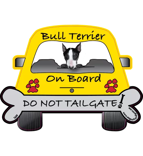 Are you a happy owner of a bull terrier? If so, this is a high time to shout out your bull terrier lover’s identity: put this catchy car magnet on your car bumper or any other metal surface at your choice!