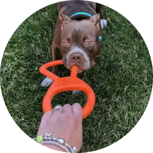 The SodaPup Pull Toy is absolutely the best thing I’ve purchased for our new puppy. She loves to play tug and lights up with enthusiasm whenever we get it out to play, which is multiple times a day. After more than a month of use and abuse the toy has resisted her sharp teeth and is totally intact with no tears or rips. For context, she’s a now a four month old, fifteen pound mini Bernedoodle who can chew like champ, destroying rugs, shoes, or whatever is left in her path. Well done, SodaPup!